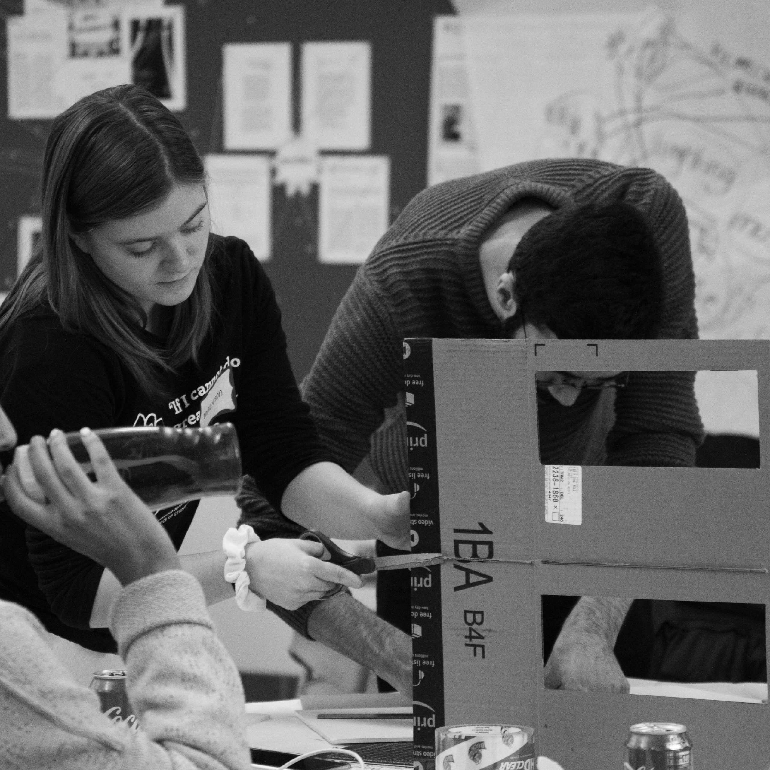 Day two started off with groups revisiting their concept. Tours to the parking garage helped the groups envision their designs in the space. Supplies were provided that allowed the participants to take their concept from words into three-dimensional forms. Groups worked together for hours refining their ideas and prototype. Each group was given the chance to share their ideas and thought process. Everyone was given insight to their prototypes.